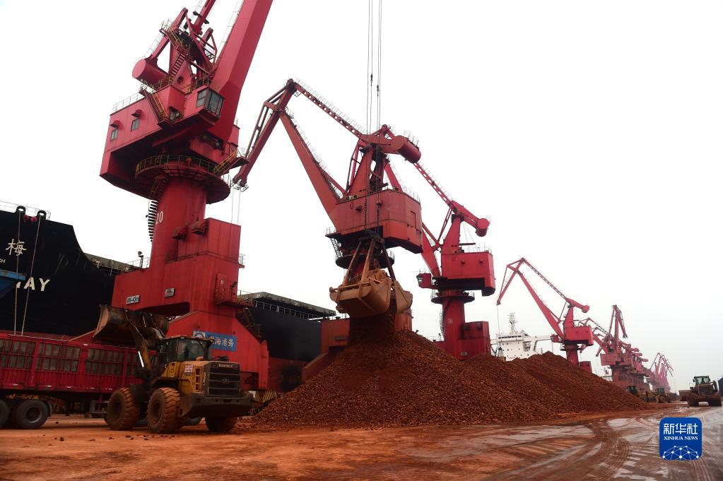 2月9日,卸船機在黃驊港礦石碼頭卸載鋁礬土。