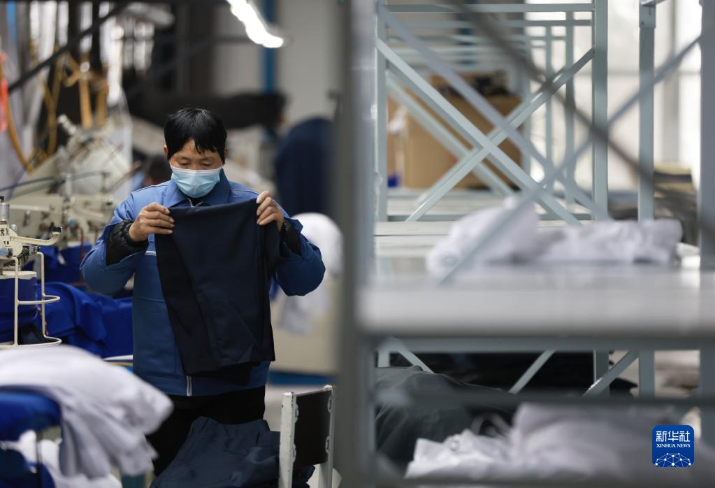 工人在河北內丘一家制衣企業(yè)生產(chǎn)車(chē)間工作(2月9日攝)。