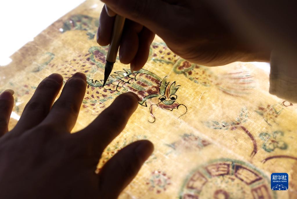2月10日,在童壽記木版年畫(huà)工作室,童敏在創(chuàng )作年畫(huà)粉本。