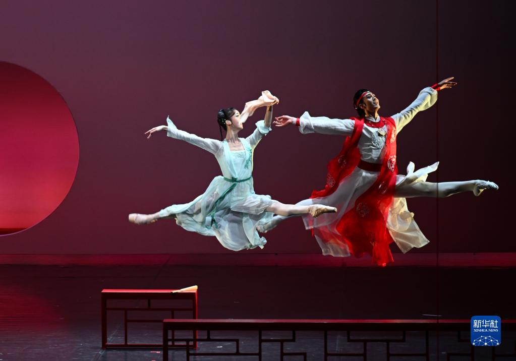 2月10日,演員黎文韜(右)、邱蕓庭在芭蕾舞劇《紅樓夢(mèng)》中分別飾演賈寶玉、林黛玉。