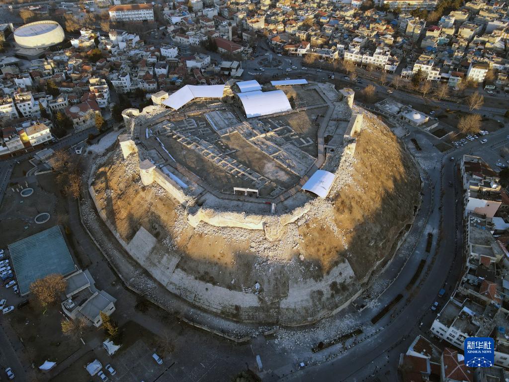 這是2月10日用無(wú)人機航拍的土耳其加濟安泰普古堡。