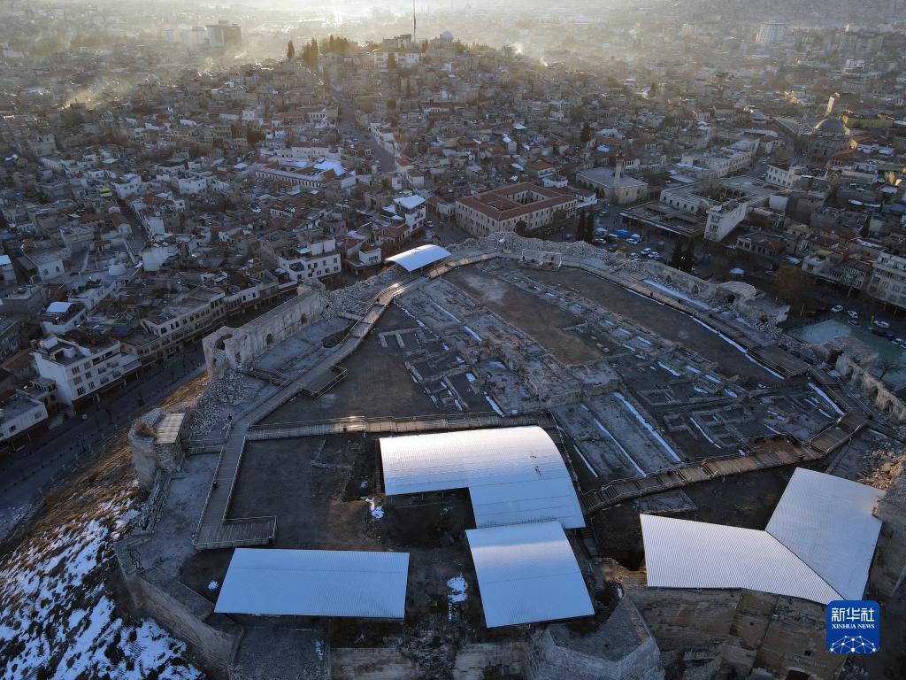 這是2月10日用無(wú)人機航拍的土耳其加濟安泰普古堡。