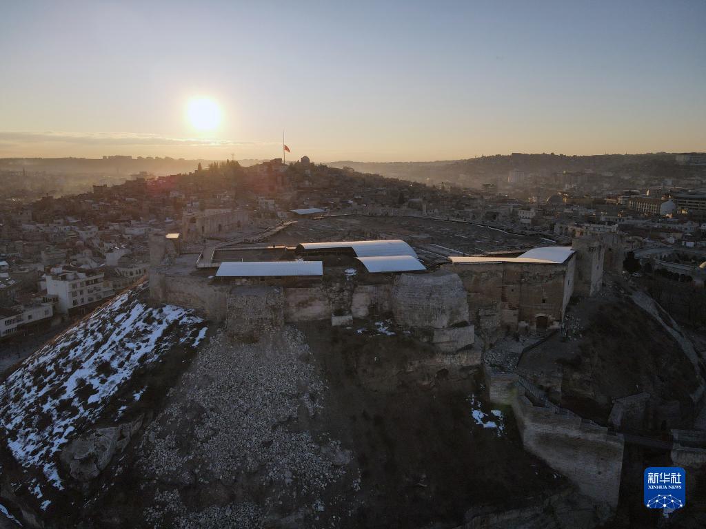 這是2月10日用無(wú)人機航拍的土耳其加濟安泰普古堡。