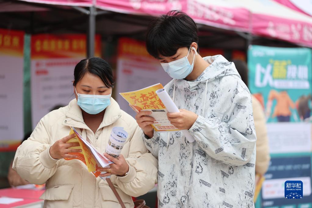 2月11日,求職者在廈門(mén)市集美區春風(fēng)行動(dòng)暨就業(yè)援助月招聘會(huì )上了解就業(yè)信息。