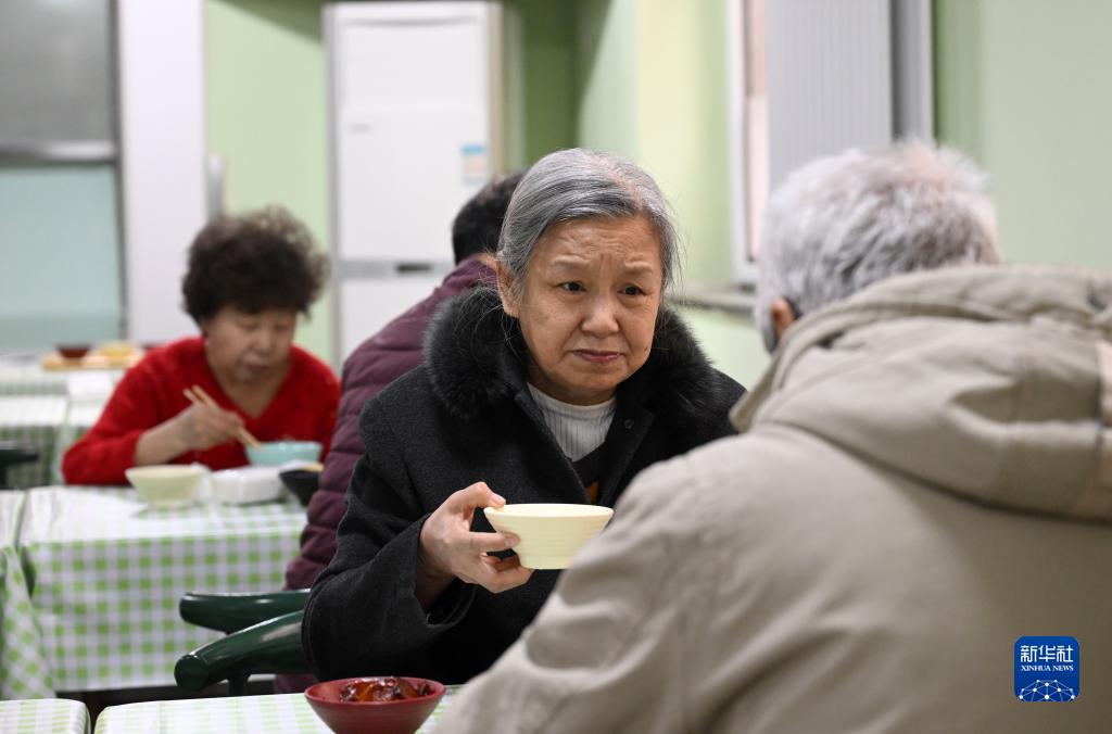 老人在天津市和平區南營(yíng)門(mén)街道的老年人“智慧食堂”用餐(2月10日攝)。