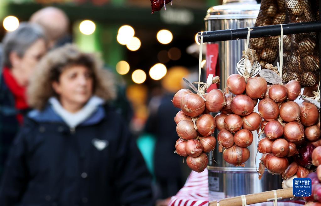 2月9日,人們在英國倫敦博羅市場(chǎng)內采購。