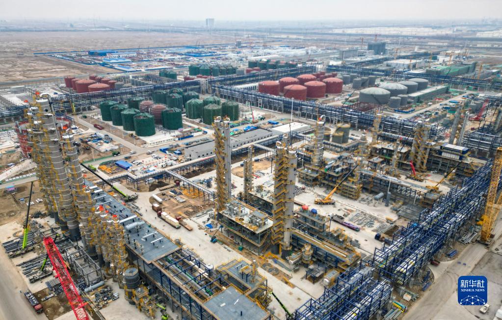 這是2月9日拍攝的天津南港乙烯項目建設施工現場(chǎng)(無(wú)人機照片)。