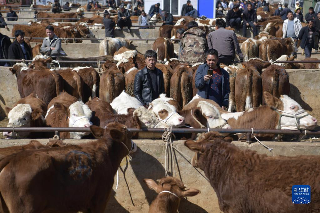 近日,貴州省威寧縣牛市交易迎來(lái)旺季。來(lái)自云南、四川、廣西及貴州當地的農戶(hù)和商販聚集到該縣小海鎮牲畜交易市場(chǎng),選購和銷(xiāo)售耕牛、能繁母牛等,以便及時(shí)投入到春耕備耕生產(chǎn)中。