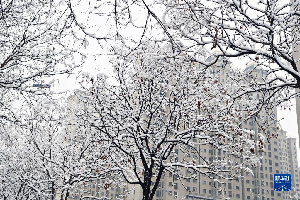 當日,山西省太原市迎來(lái)降雪天氣,雪落枝頭,景色迷人。