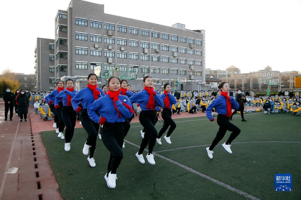 2月13日,北京二中學(xué)生在新學(xué)期開(kāi)學(xué)典禮上表演舞蹈《奔向未來(lái)》。