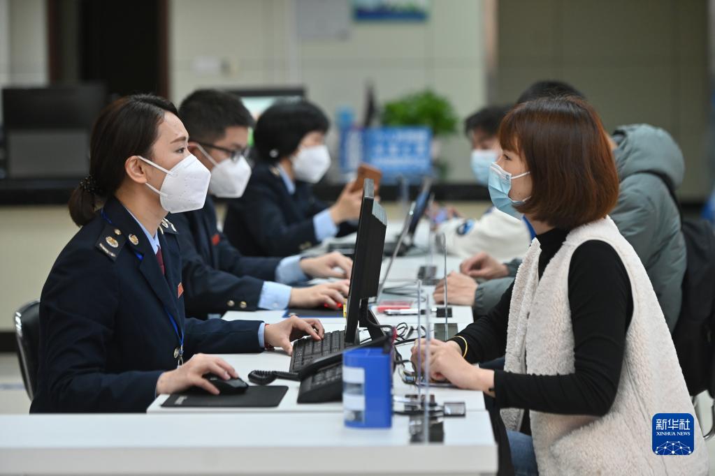 2月13日,在福州市閩清縣辦稅服務(wù)大廳,工作人員向企業(yè)工作人員介紹稅惠政策。
