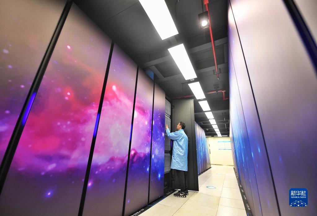 2月14日,國家超級計算成都中心科研人員在巡檢機房設備。