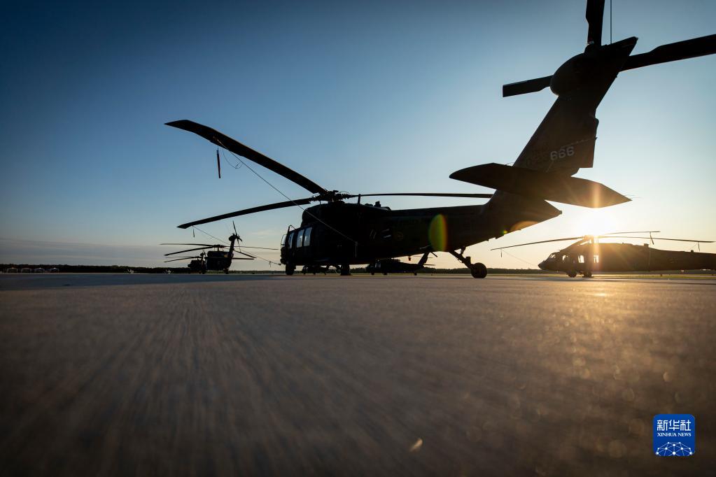 這張2019年7月24日拍攝的照片顯示,美國田納西州國民警衛隊的“黑鷹”直升機停在停機坪上。