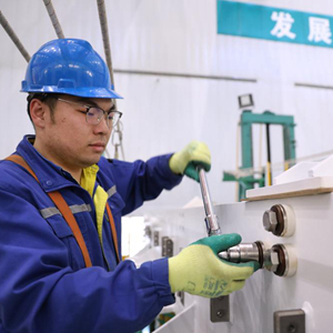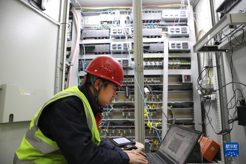 2月16日,工人在即將完工的特高壓套管研制基地內進(jìn)行設備調試。