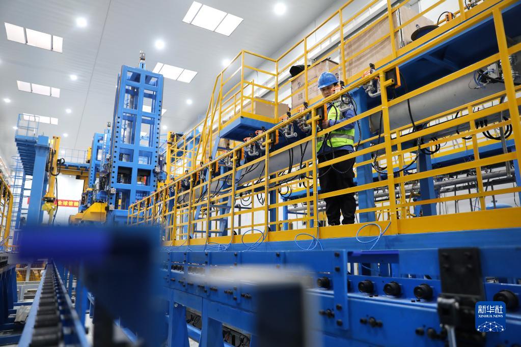 2月16日,工人在即將完工的特高壓套管研制基地內進(jìn)行設備調試。