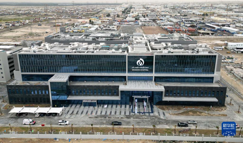 這是2月15日在科威特杰赫拉省拍攝的科威特醫保醫院項目杰赫拉省分院外景(無(wú)人機照片)。