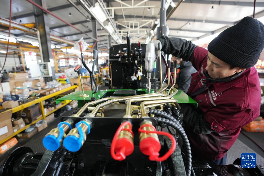 2月16日,佳木斯驥馳拖拉機制造有限公司裝配車(chē)間,工人進(jìn)行裝配作業(yè)。