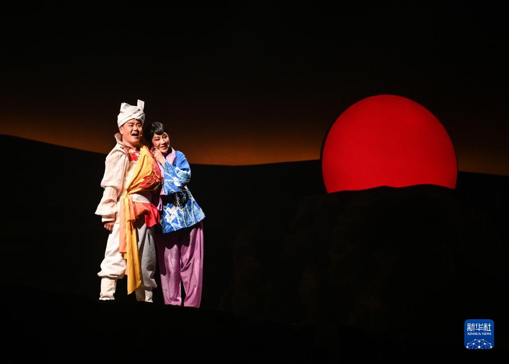 2月16日在首屆中國非物質(zhì)文化遺產(chǎn)保護年會(huì )展演活動(dòng)上拍攝的陜北秧歌劇《米脂婆姨綏德漢》演出現場(chǎng)。