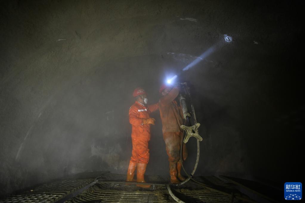 2月7日,施工人員在位于陜西省商洛市商州區的西氣東輸三線(xiàn)工程陜西段劉村隧道作業(yè)。