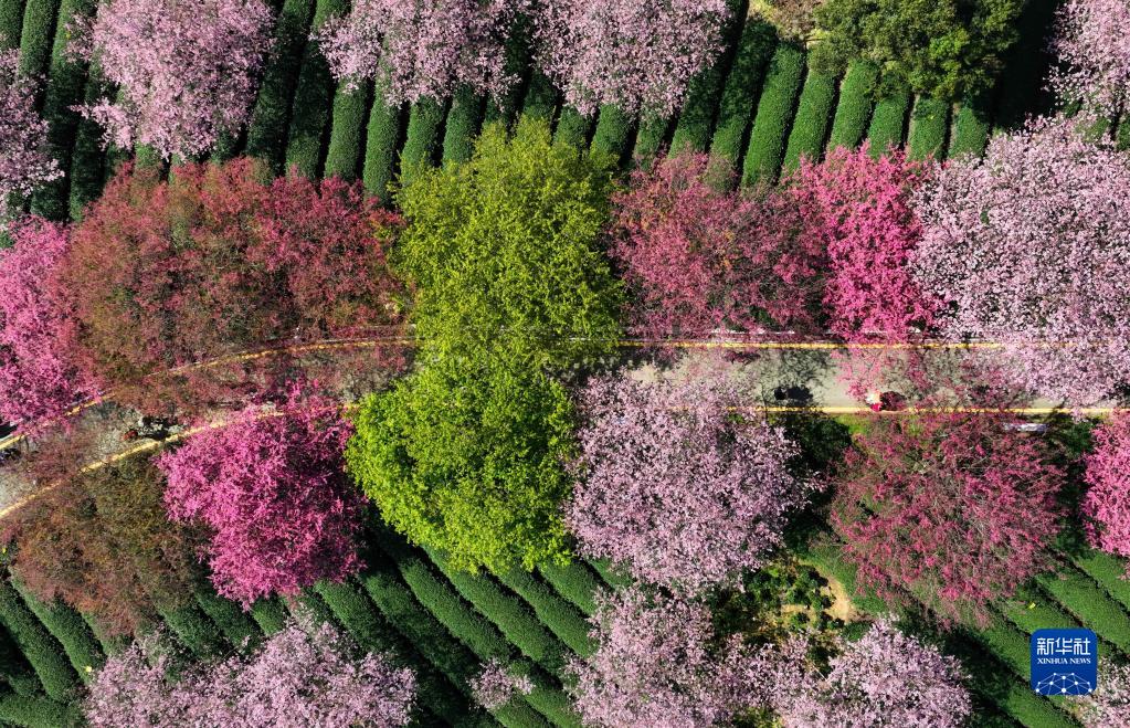 2月17日航拍的臺品櫻花茶園(無(wú)人機照片)。