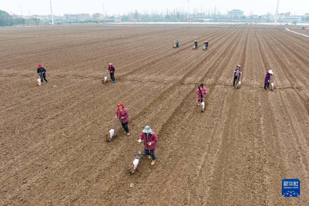初春時(shí)節,湖北省各地農民搶抓農時(shí),翻整田地,播種施肥,呈現一派繁忙景象。