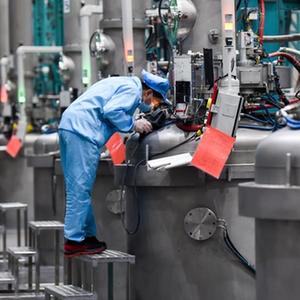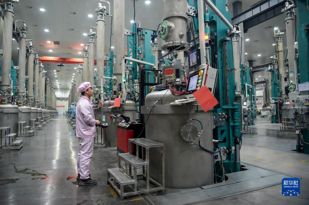 2月17日,在烏海市京運通新材料科技有限公司,工人在生產(chǎn)車(chē)間作業(yè)。
