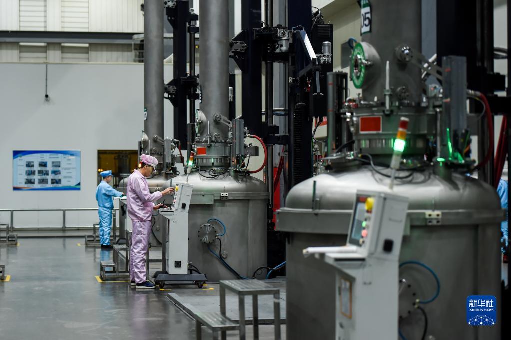 2月17日,在烏海市京運通新材料科技有限公司,工人在生產(chǎn)車(chē)間作業(yè)。