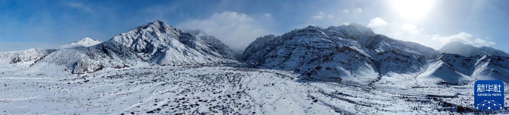 2月18日拍攝的內蒙古賀蘭山國家級自然保護區(無(wú)人機全景照片)。