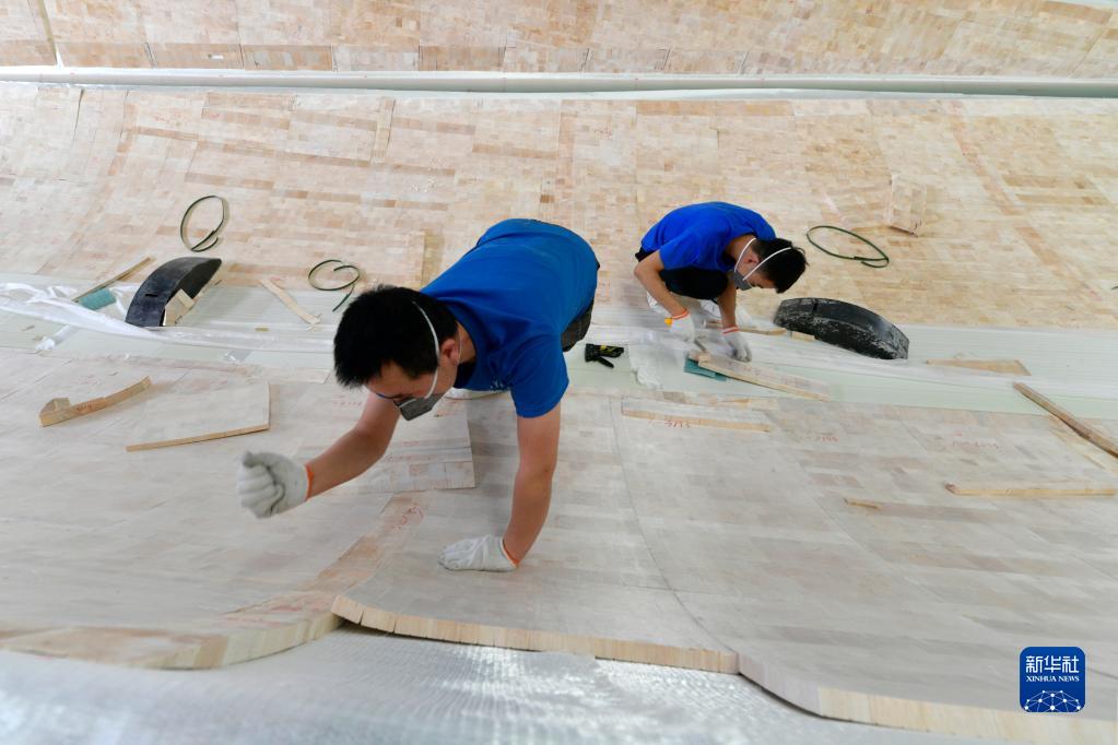 2月18日,在武威市涼州區一家風(fēng)電裝備生產(chǎn)企業(yè),工人在風(fēng)機葉片生產(chǎn)線(xiàn)上工作。