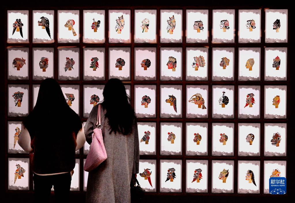游客在開(kāi)封清明上河園景區內觀(guān)看展示的皮影(2月14日攝)。
