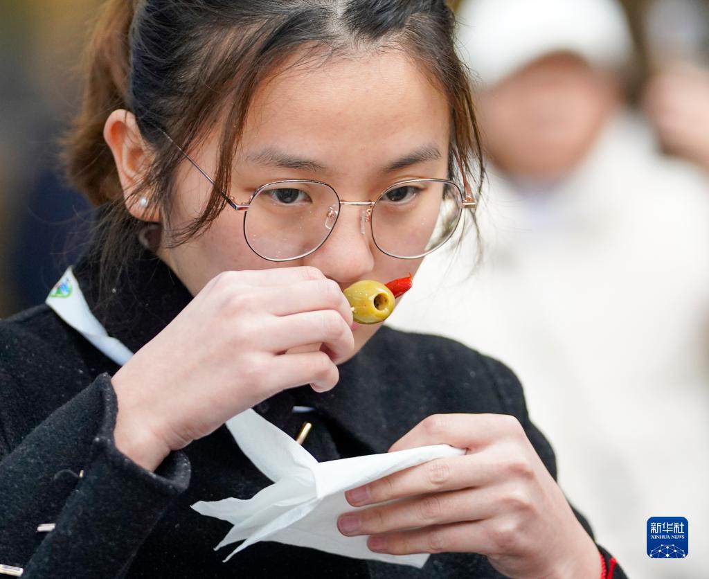 2月20日,在第五屆中國重慶·涪陵榨菜產(chǎn)業(yè)國際博覽會(huì )現場(chǎng),一名觀(guān)眾品嘗法國腌菜產(chǎn)品。