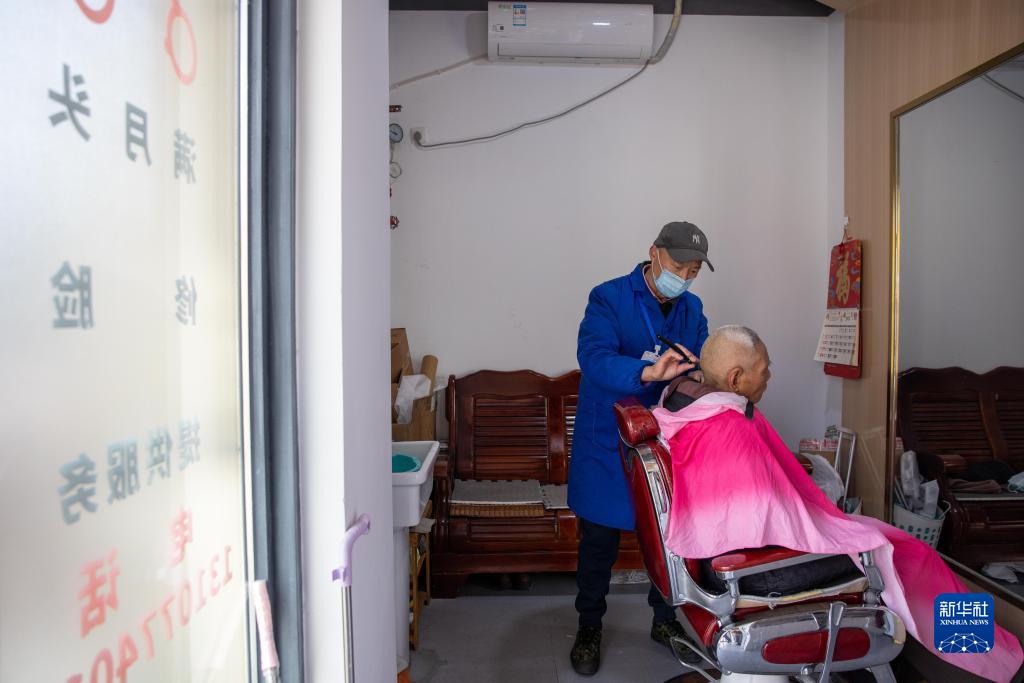 2月21日,理發(fā)師在“幸福格子鋪”內為社區居民提供理發(fā)服務(wù)。在杭州市上城區丁蘭街道的場(chǎng)地和設備支持下,便民服務(wù)單位免費入駐“幸福格子鋪”,為周邊社區的4萬(wàn)余名居民提供小家電維修、衣物縫補、修鞋、理發(fā)等便民服務(wù)。