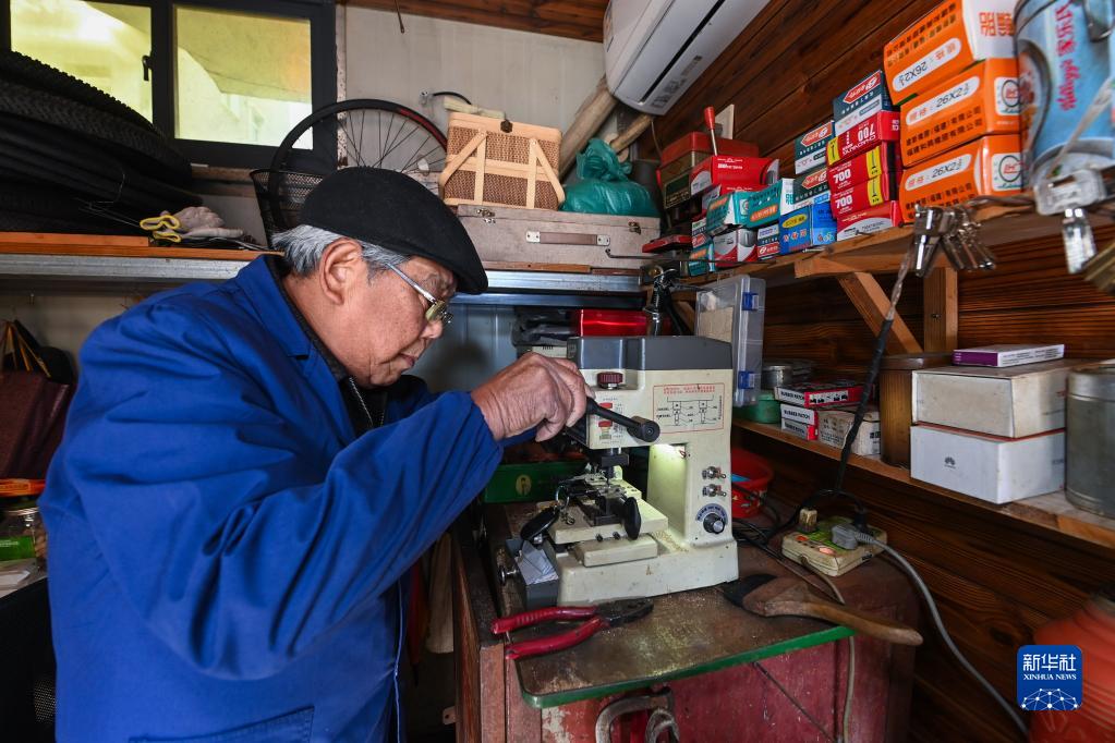 2月21日,方木根在浙江省杭州市富陽(yáng)區銀湖街道高橋社區的便民服務(wù)亭內給居民配鑰匙。該便民服務(wù)亭由社區提供,免租金和水電費,同時(shí)還組織黨員志愿者定期進(jìn)行周邊環(huán)境保潔。銀湖街道在打造現代社區的過(guò)程中,設置多個(gè)“小修小補”便民服務(wù)亭,積極打造便民生活圈、滿(mǎn)足居民日常生活需求。