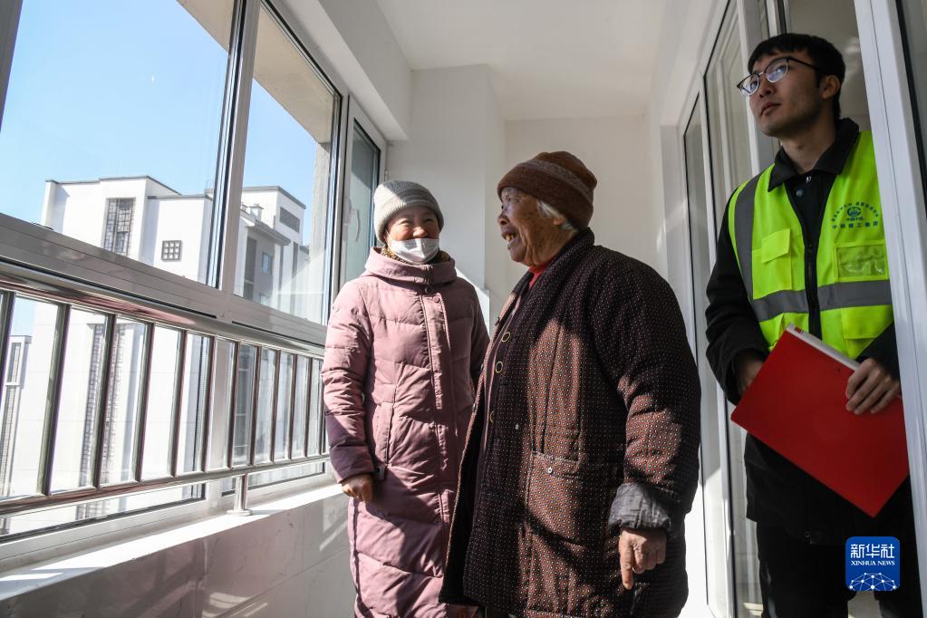 2月21日,回遷居民陳寶鳳(中)和家人在中鐵建工集團技術(shù)人員陪同下驗收新居。