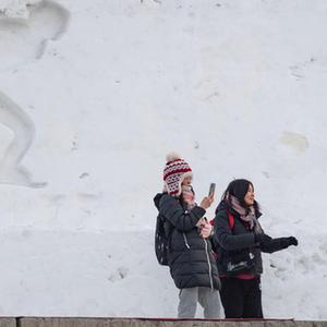 2月22日,游客在哈爾濱松花江冰雪嘉年華園區內游玩。
