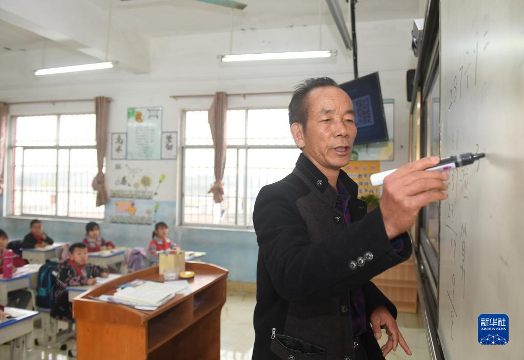 在廣西賓陽(yáng)縣王靈鎮中心學(xué)校七新教學(xué)點(diǎn),王英紅老師在給學(xué)生上課(2月22日攝)。