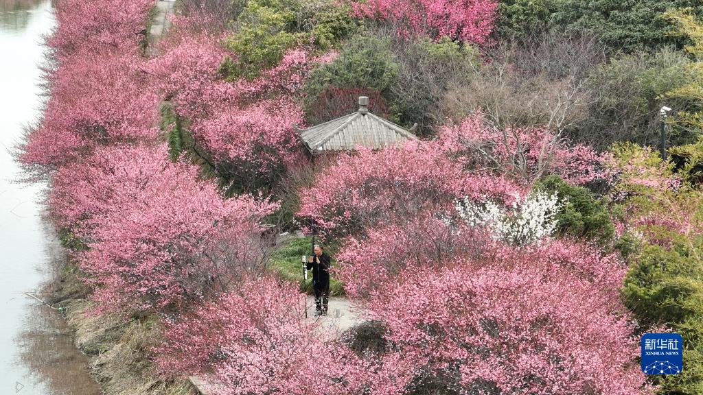 2月22日拍攝的江蘇省太倉市雙鳳鎮勤力村梅花莊園(無(wú)人機照片)。