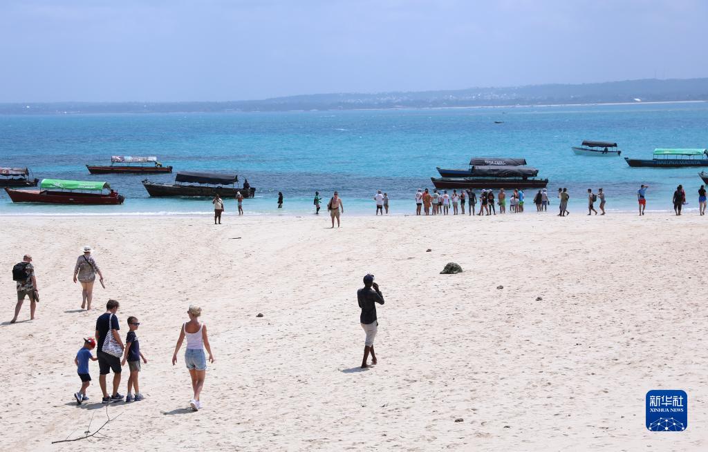 2月23日,游客在坦桑尼亞桑給巴爾島海邊游覽。