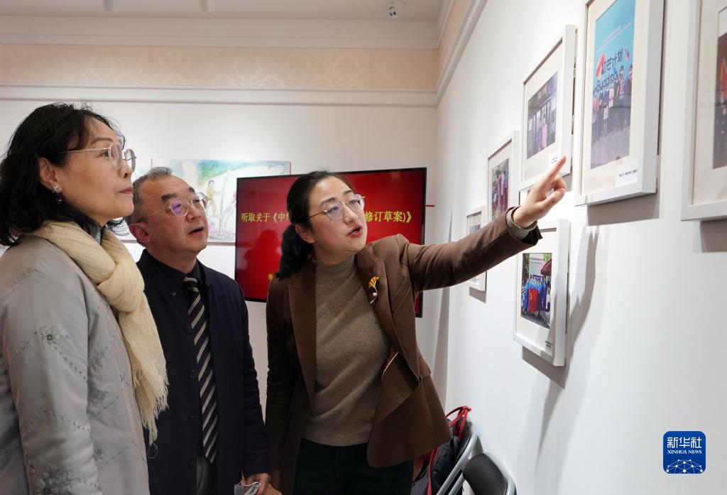 2月7日,在上海虹橋街道古北市民中心召開(kāi)的立法意見(jiàn)征詢(xún)會(huì )后,盛弘(右一)和參會(huì )代表交流。新華社記者 劉穎 攝