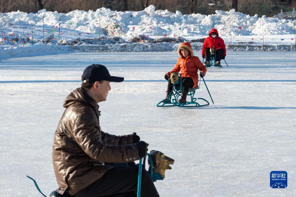 2月25日,游客在哈爾濱太陽(yáng)島雪博會(huì )園區游玩。