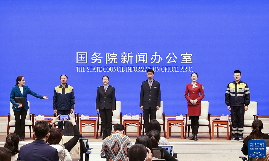2月27日,國務(wù)院新聞辦公室舉行中外記者見(jiàn)面會(huì ),請“最美鐵路人”代表與中外記者見(jiàn)面交流。