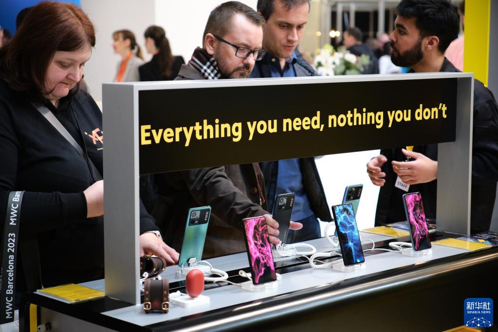 2月27日,參觀(guān)者在西班牙巴塞羅那舉行的世界移動(dòng)通信大會(huì )上體驗智能手機。