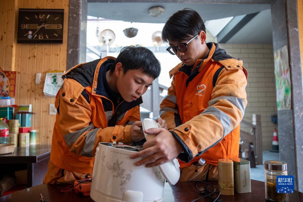 3月1日,鐵路青年志愿者在杭州市前塘社區為社區居民修理電飯煲。