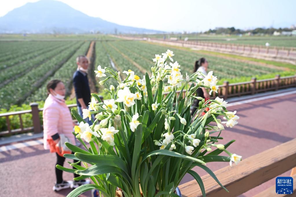 2月28日,游人在漳州圓山水仙花發(fā)展有限公司水仙花種植基地參觀(guān)。