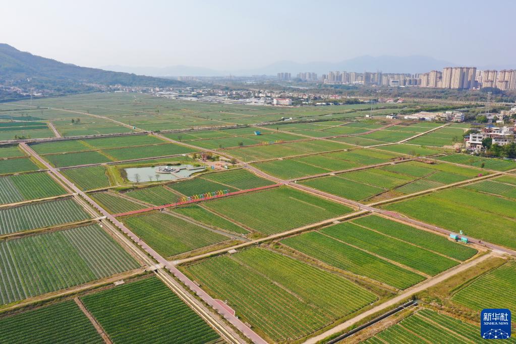 這是漳州圓山水仙花發(fā)展有限公司的水仙花種植基地一角(2月28日攝,無(wú)人機照片)。