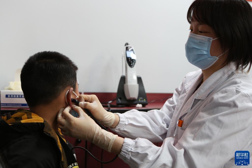 3月3日,復旦大學(xué)附屬兒科醫院醫生為兒童檢查聽(tīng)力。