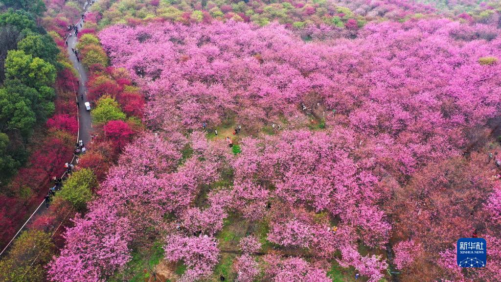 隨著(zhù)氣溫回暖,湖南省常寧市羅橋鎮櫻花園里的3000多畝櫻花次第綻放,春色滿(mǎn)園,吸引游客前來(lái)觀(guān)賞游玩。