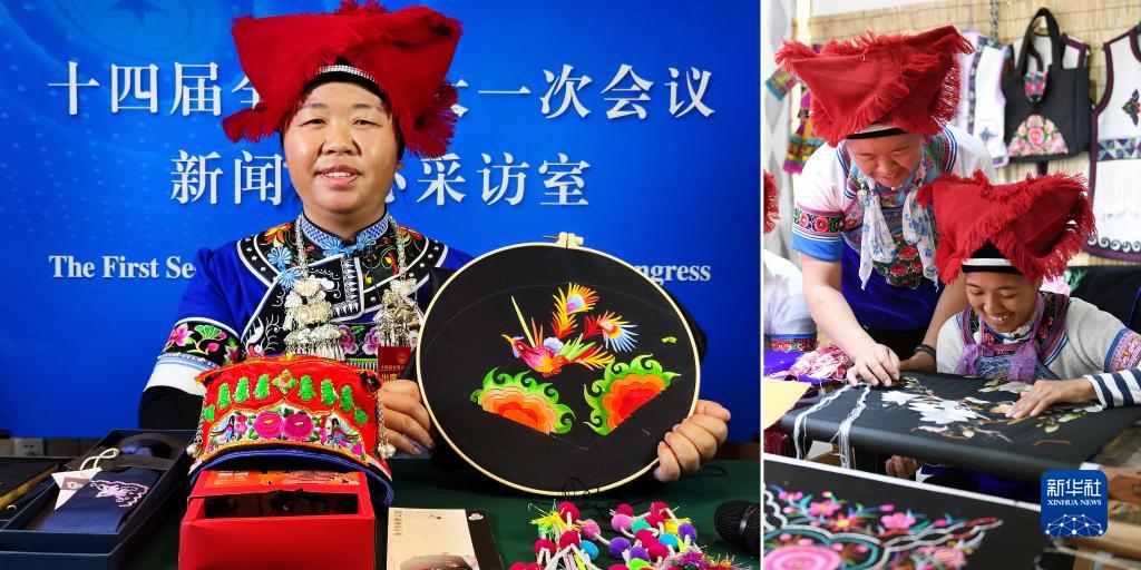 全國人大代表王陸芬是云南省硯山縣紙藝刺繡農民專(zhuān)業(yè)合作社理事長(cháng)。她的合作社從最初26個(gè)繡娘發(fā)展到現在2000余人,其中一半以上是50歲以上的婦女。這些女性靠刺繡增加了收入。王陸芬表示,她和姐妹們將繼續用雙手“繡”出更加幸福美滿(mǎn)的生活。