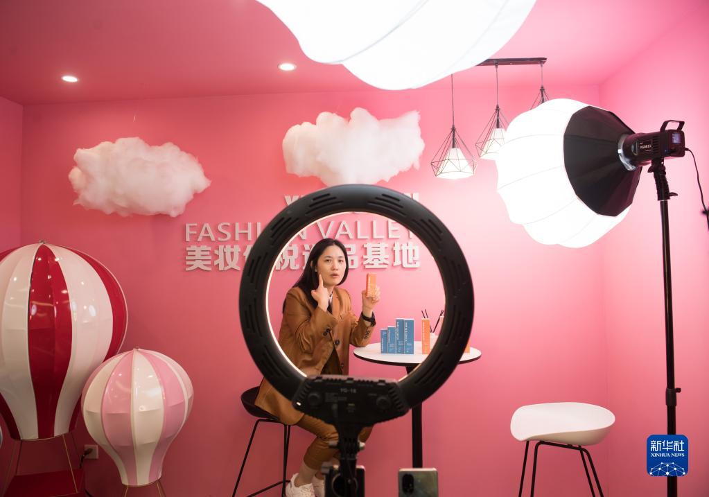3月6日,一位主播在直播美妝產(chǎn)品。