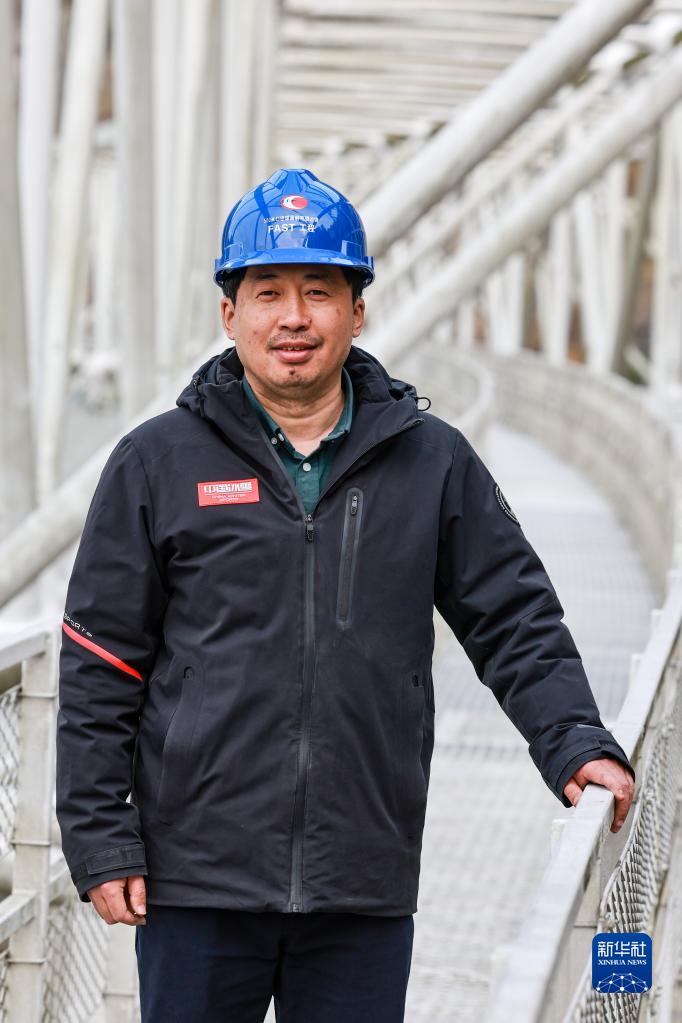 2月13日,姜鵬在“中國天眼”的圈梁上(維護保養期間拍攝)。